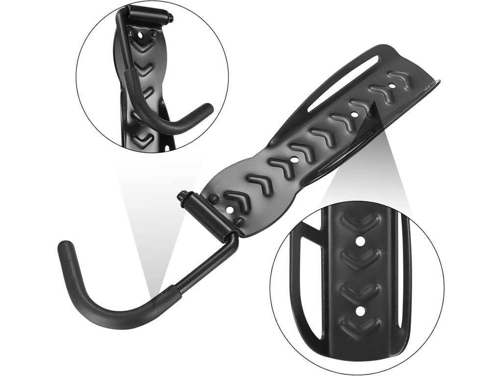 Nástěnný držák na kolo je vyroben z legované oceli, s gumovou vrstvou na povrchu, vynikajícím zpracováním, odolné proti poškrábání, odolné proti korozi, s dlouhotrvající trvanlivostí a stabilitou. Gumová vrstva zabraňuje poškození a poškrábání kol.