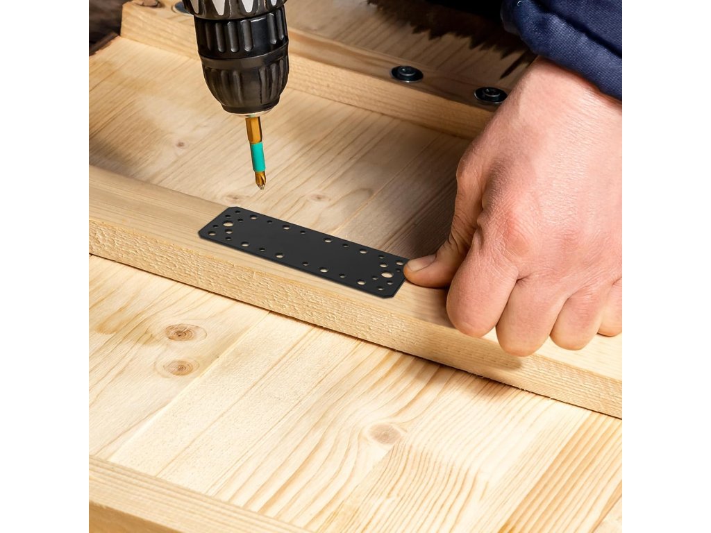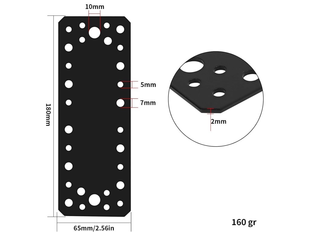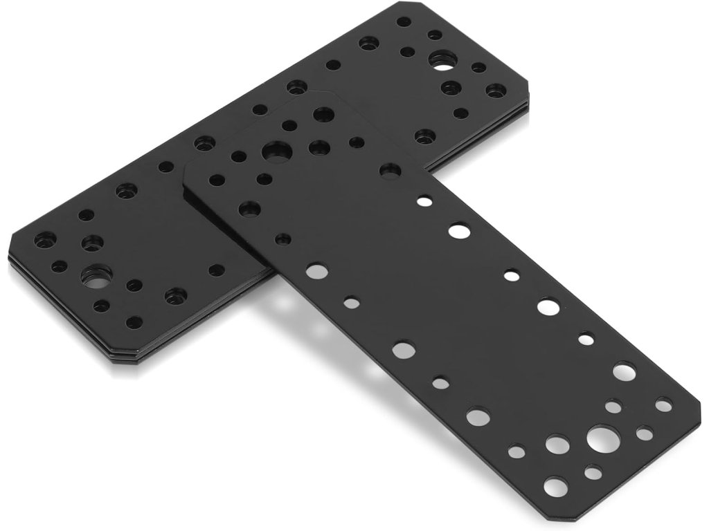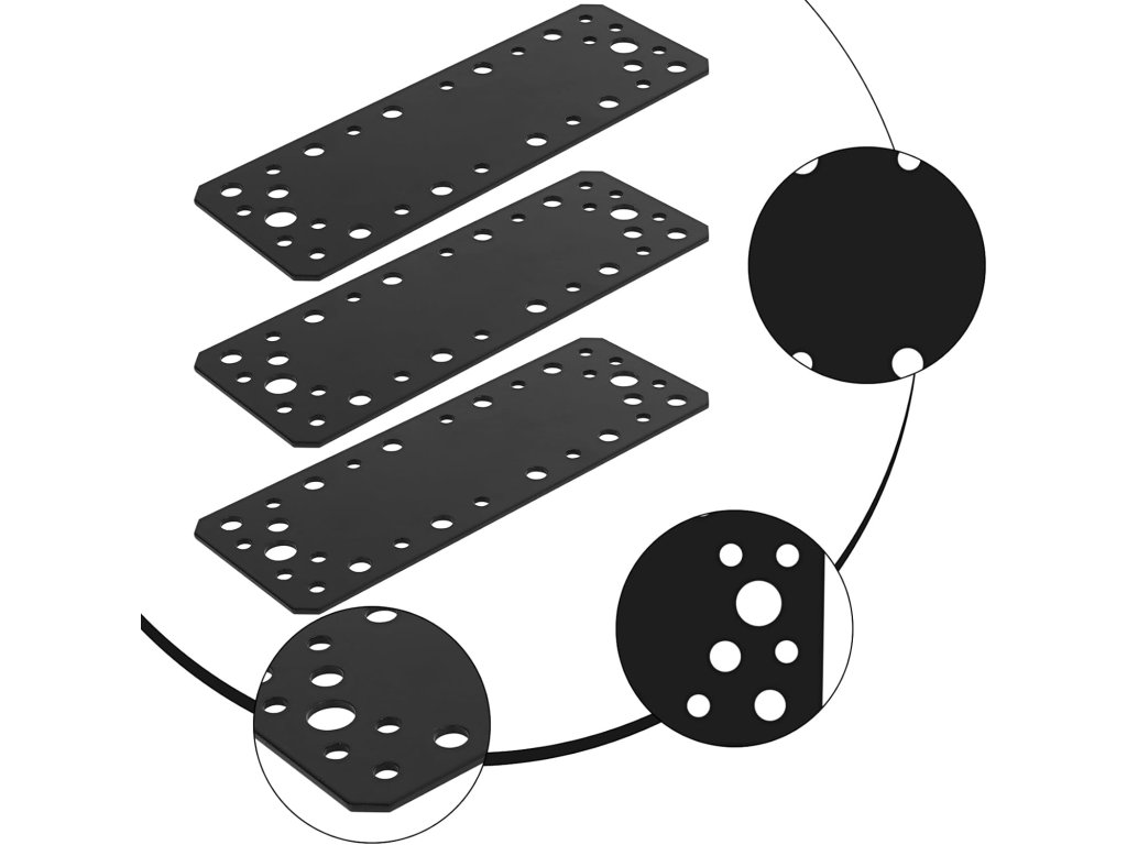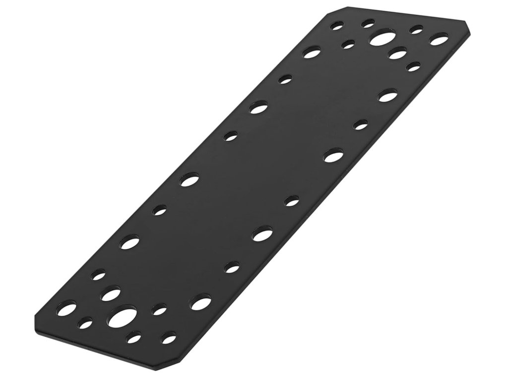 4ks Ploché ocelové spojky, děrované desky 168 x 65 x 2 mm, černé