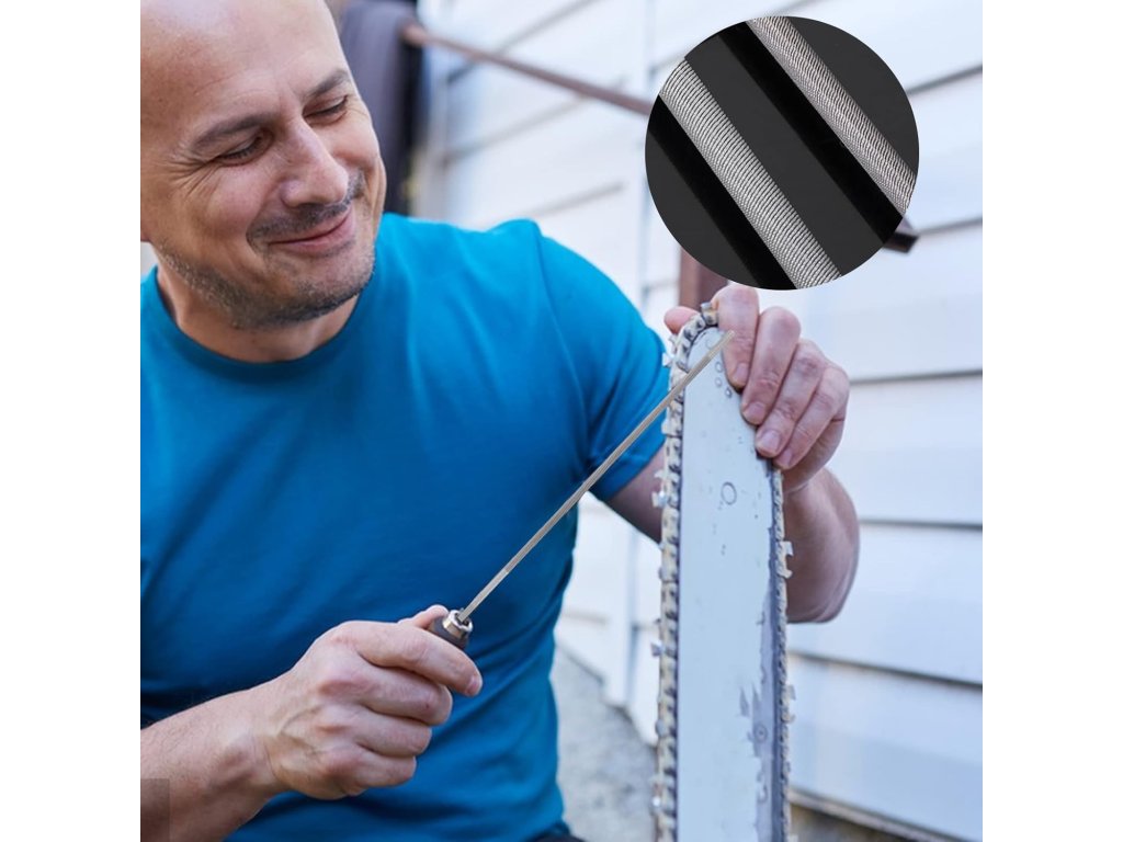 Pilníky na řetězovou pilu mají ochranný design na obou koncích a jsou vyrobeny tak, že jsou velmi hladké a bezpečné, bez ostrých hran.