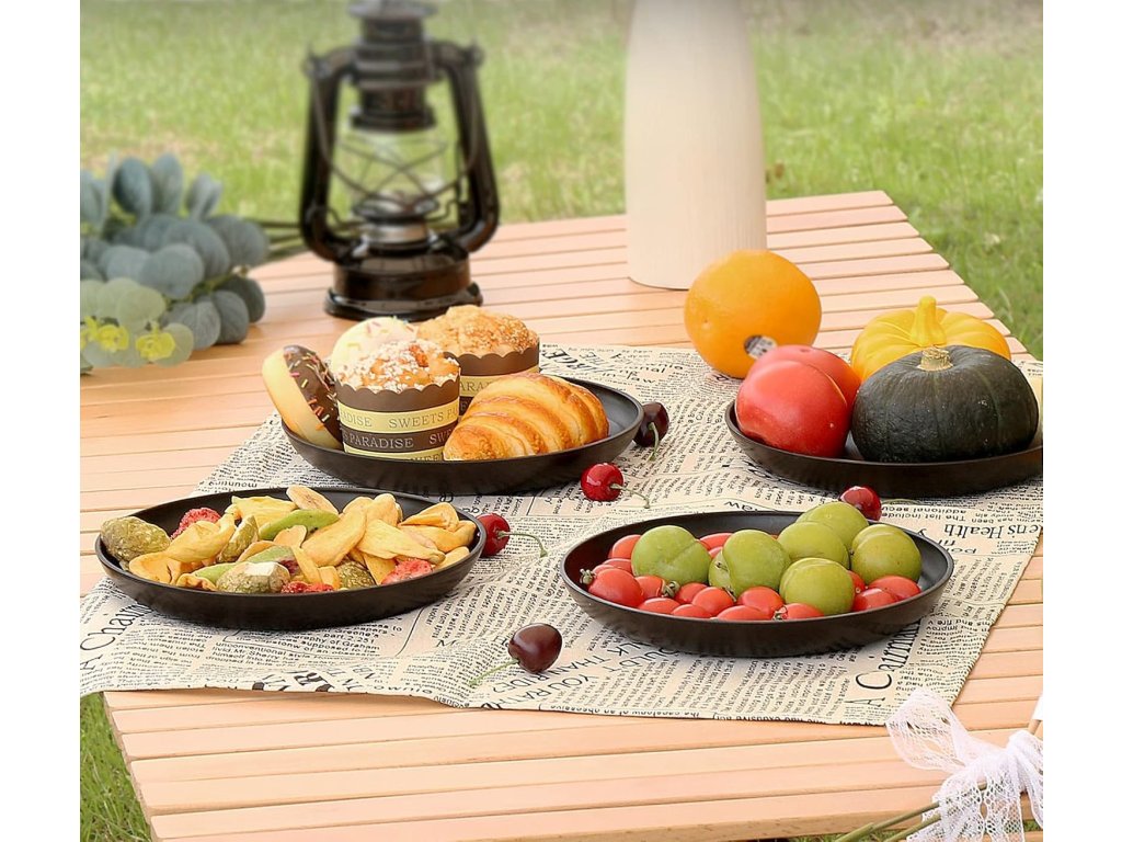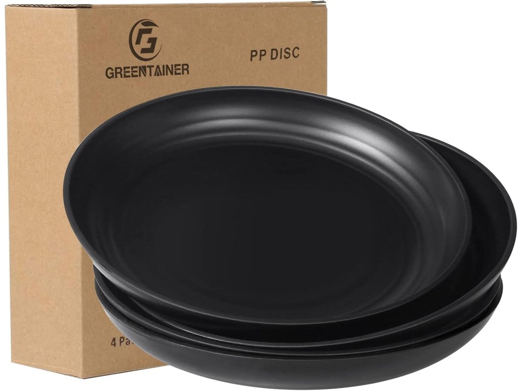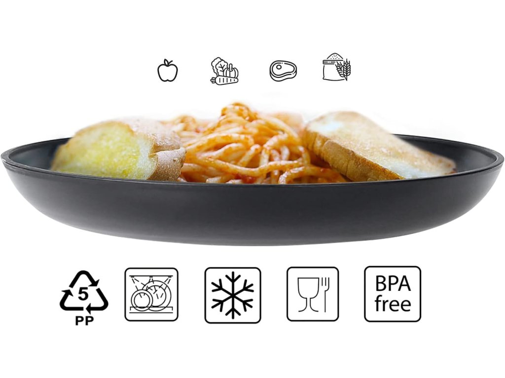 Greentainer 4ks nerozbitné PP talíře 19,8 cm, nejen do karavanu, černé