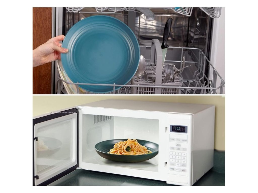 Talíře jsou bezpečné pro použití v mikrovlnné troubě a myčce. Snadno se obsluhují, čistí a skladují. Teplotní odolnost dosahuje až 120 °C.
