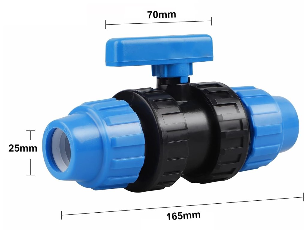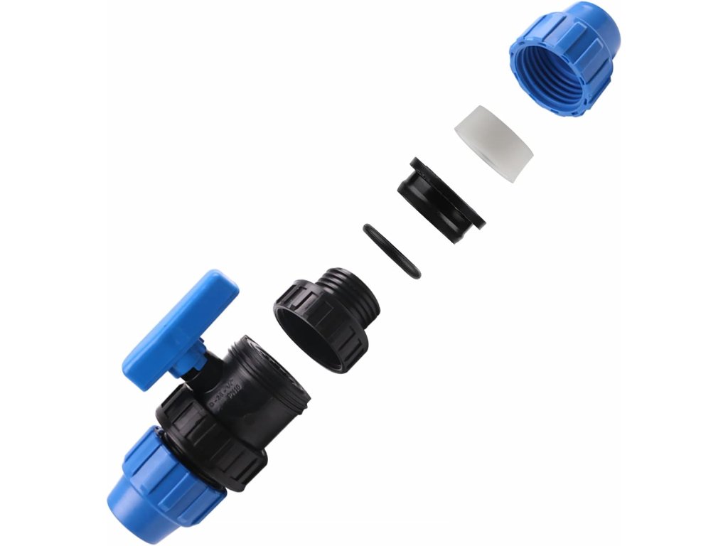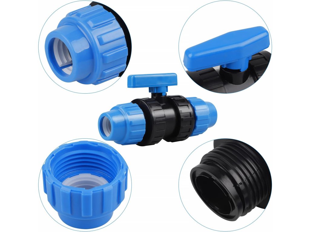Kulový ventil pro PE trubky, vhodný pro montáž do všech druhů zavlažovacích zařízení a vodovodních potrubí.