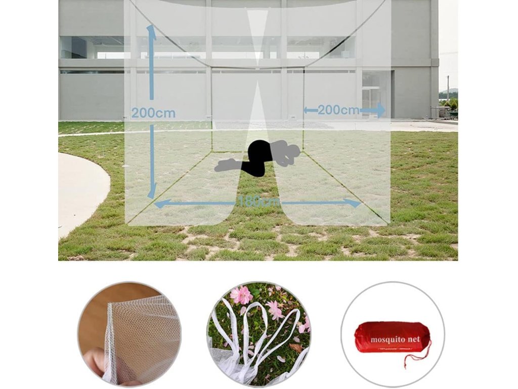 Moskytiéra nemá vchod! Na rozdíl od jiných moskytiér s vchodem se nemusíte bát, že by se vám dovnitř dostali komáři, což zajišťuje 360° ochranu proti komárům.
