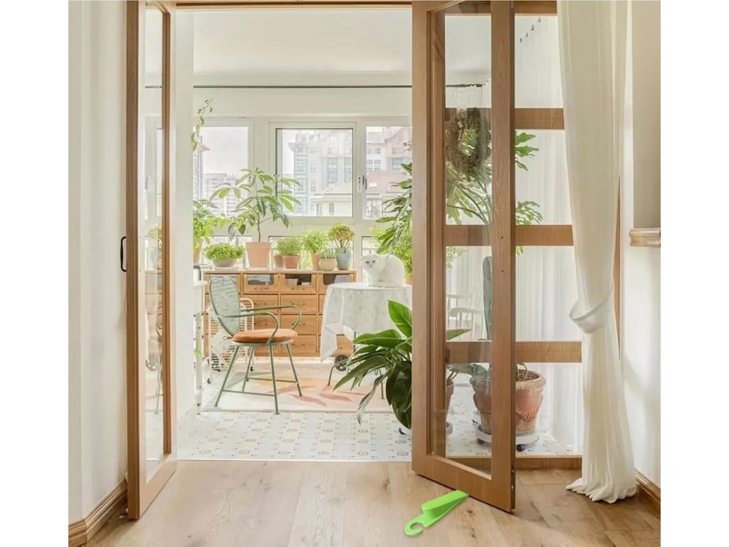 Dveřní zarážka je vhodná pro všechny typy podlah, koberec, parkety nebo dlaždice, pro jakýkoliv druh dveří, například dřevěné dveře, kovové dveře, skleněné dveře, atd.