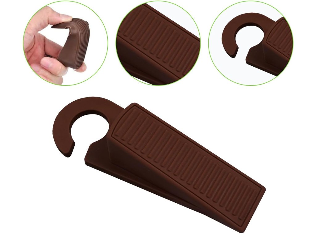 Dveřní zarážky jsou vyrobeny z měkkého prémiového silikonu a mají drážkovanou plochu. Lze použít obráceně ke zvýšení tření s podkladem.