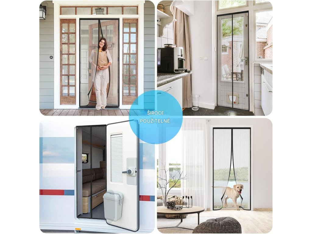 Zaručuje lepší větrání a nedovolí proniknout hmyzu navzdory otevřeným dveřím.