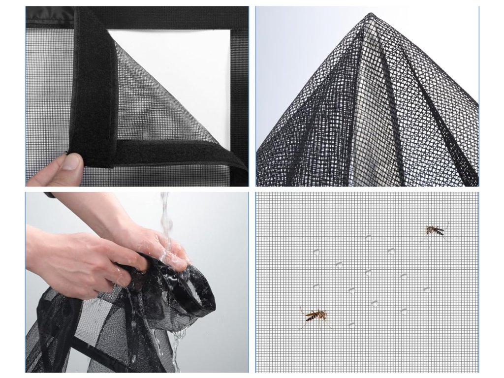 Díky všitým magnetům se síť proti hmyzu otevírá a zavírá rychle, spolehlivě a tiše. Spolehlivé držení magnetů i při silném větru.