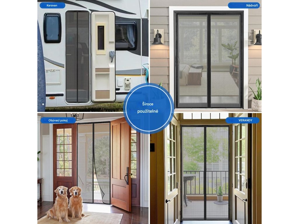 Zaručuje lepší větrání a nedovolí proniknout hmyzu navzdory otevřeným dveřím. Vhodná pro dveře s oběma směry otevírání (vlevo nebo vpravo).