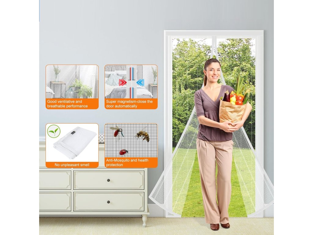 Síť proti hmyzu s magnety je ideálním řešením pro udržitelnou investici do vašeho obytného prostoru. Zaručuje lepší větrání a nedovolí proniknout hmyzu navzdory otevřeným dveřím.