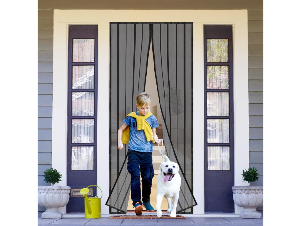 Zaručuje lepší větrání a nedovolí proniknout hmyzu navzdory otevřeným dveřím. Zaručuje průchod domácím mazlíčkům.