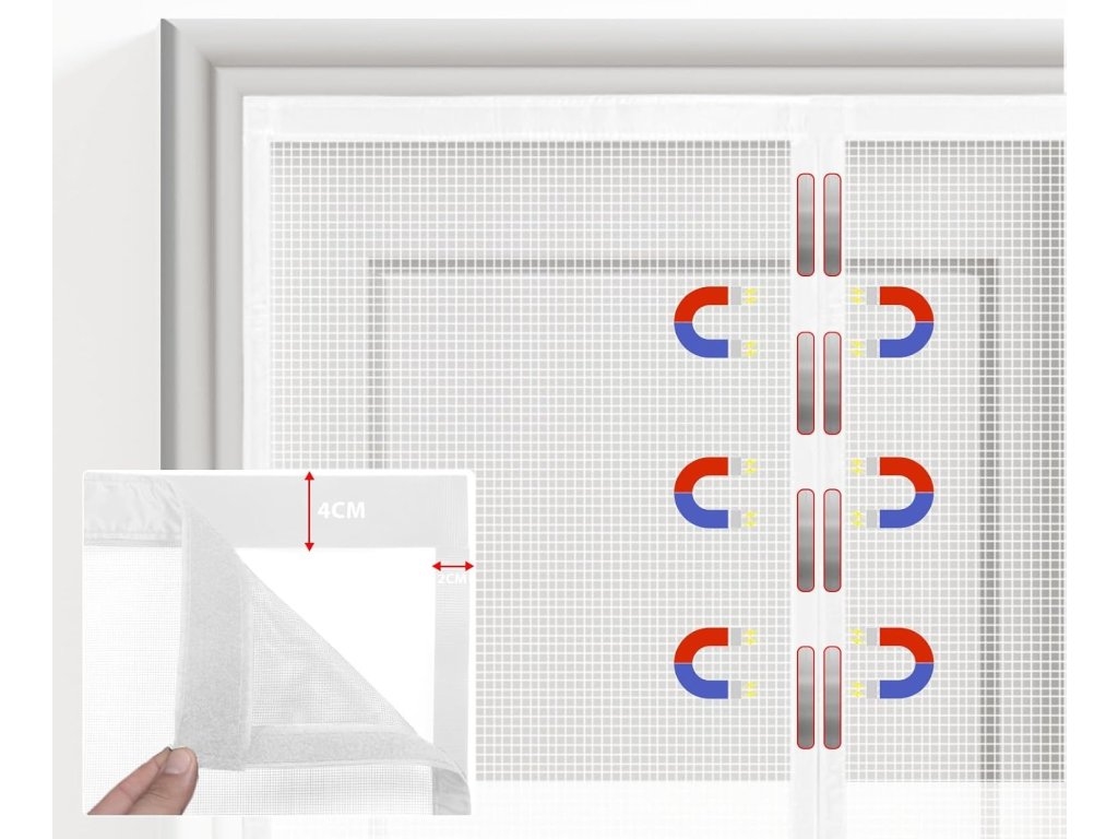 Snadná montáž bez vrtání – magnetickou síť proti hmyzu lze namontovat do vašeho obytného prostoru v několika krocích. Lze ji upevnit bez dalších nástrojů.