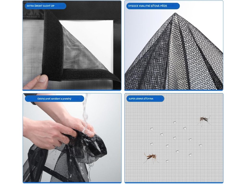 Díky všitým magnetům se síť proti hmyzu otevírá a zavírá rychle, spolehlivě a tiše. Spolehlivé držení magnetů i při silném větru.