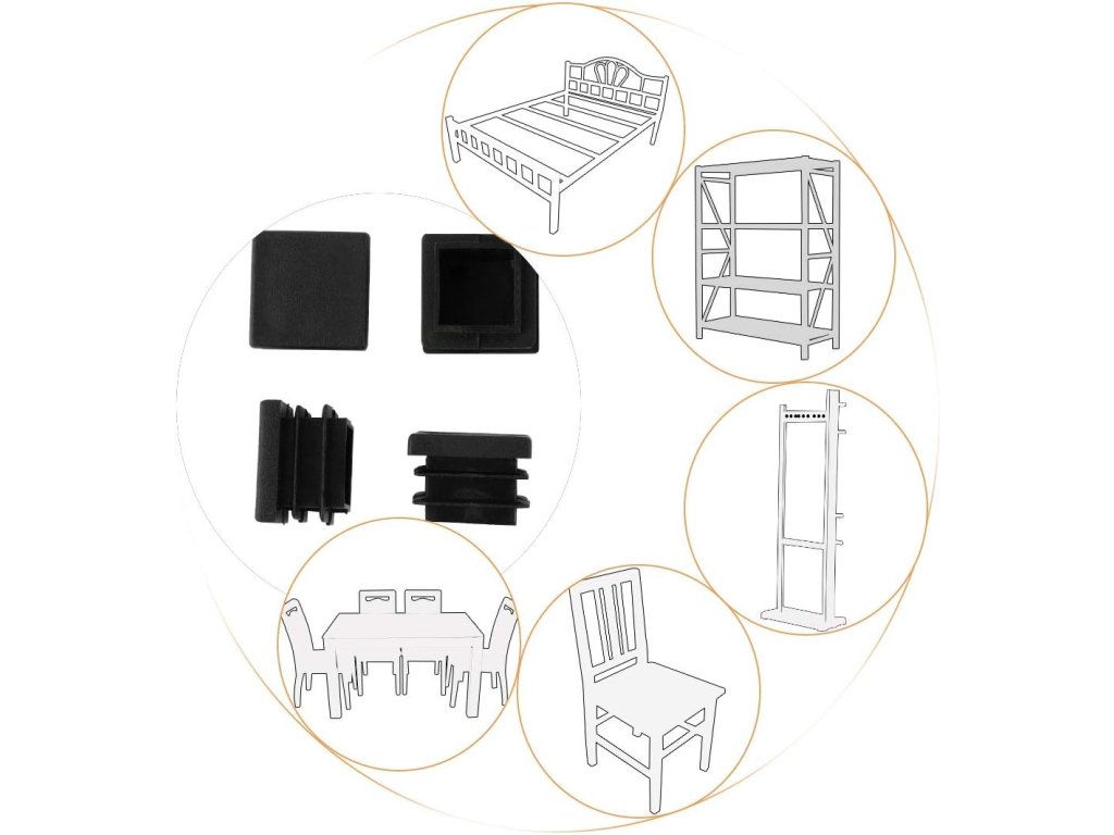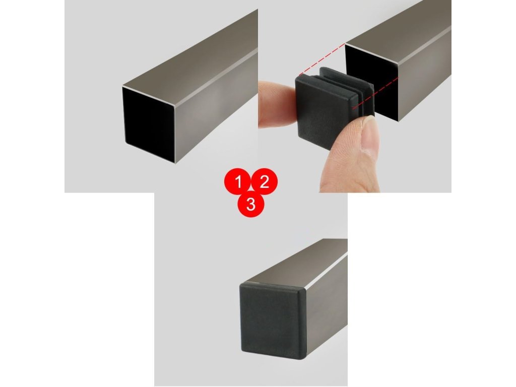Vložky do trubky odpovídají montážní velikosti nábytkové nohy o stranách 18-20 mm.