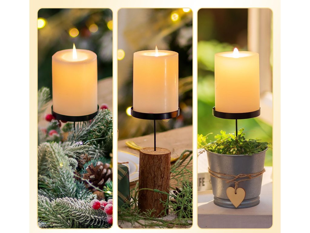 Průměr desky svícnu činí 8 cm a jsou určeny pro válcové svíčky nebo LED svíčky.