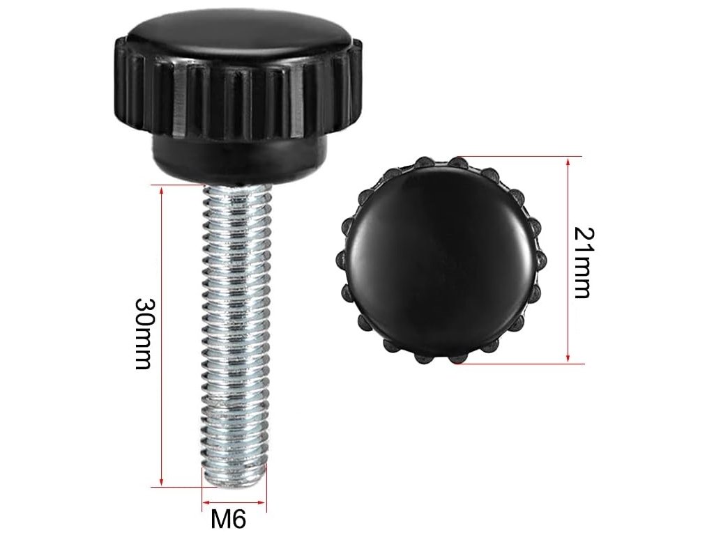 6ks vroubkovaných upínacích šroubů M6x30 mm, bakelitová hlava