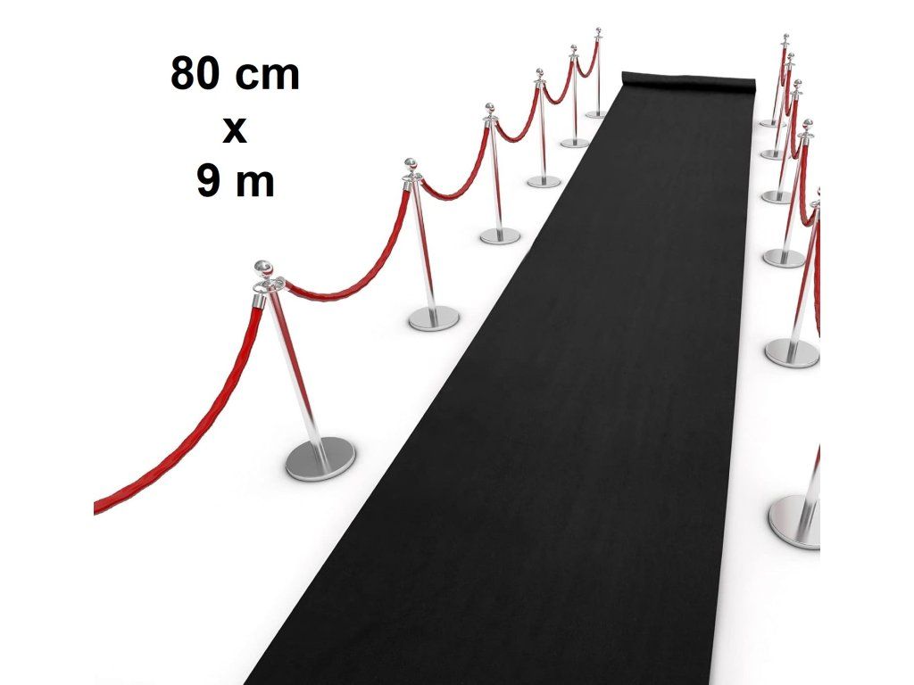 Červený běhoun je široký 80 cm a dlouhý 9 metrů.