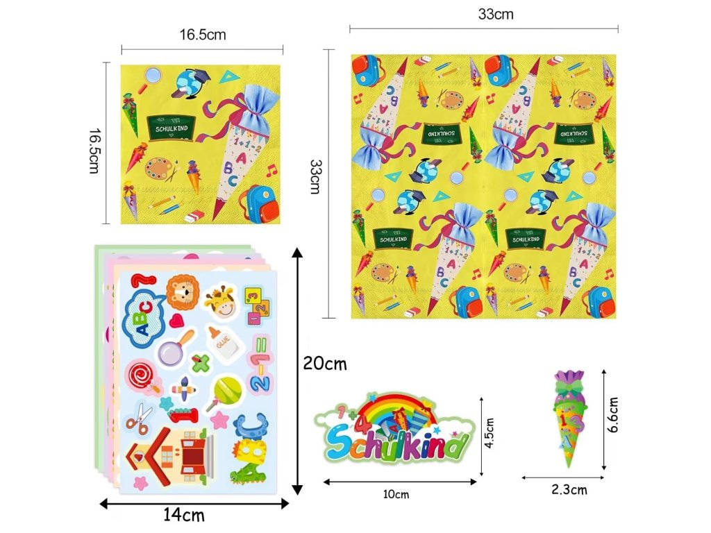 Sada 40 ubrousků První den ve škole + 6 listů školních samolepek s cukrovými sáčky ABC 123.