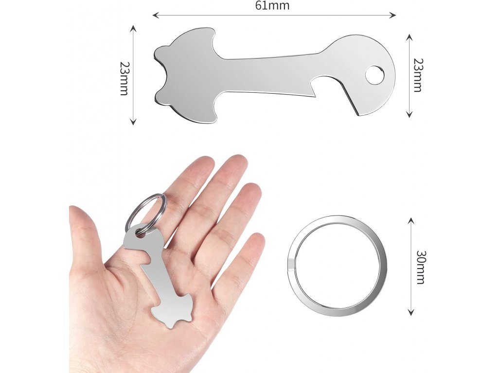 Přívěsek na klíče do nákupního vozíku, ušlechtilá ocel s kroužkem na klíče, otvírák na láhve