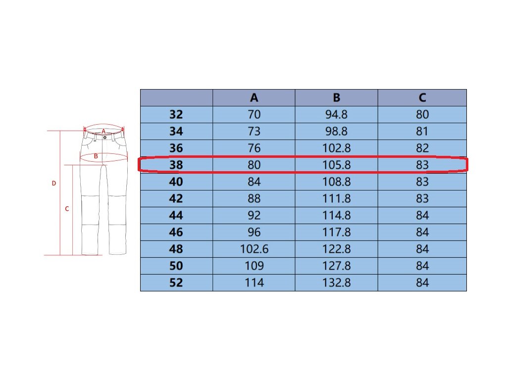 Elastické pracovní kalhoty jsou vyrobeny z kvalitního strečového materiálu, skládající se z 90% nylonu, 10% elastanu.