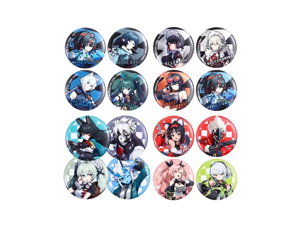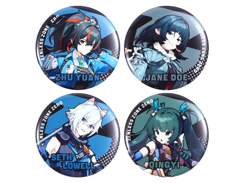 Sada obsahuje 4 jedinečné odznaky (viz první foto), každý s jiným charakterem ze Zenless Zone Zero, perfektní pro fanoušky a sběratele.