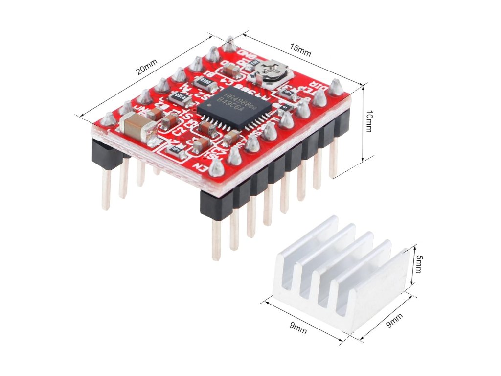 Řídicí modul krokového motoru A4988 s chladičem, kompatibilní s 3D tiskárnou RepRap