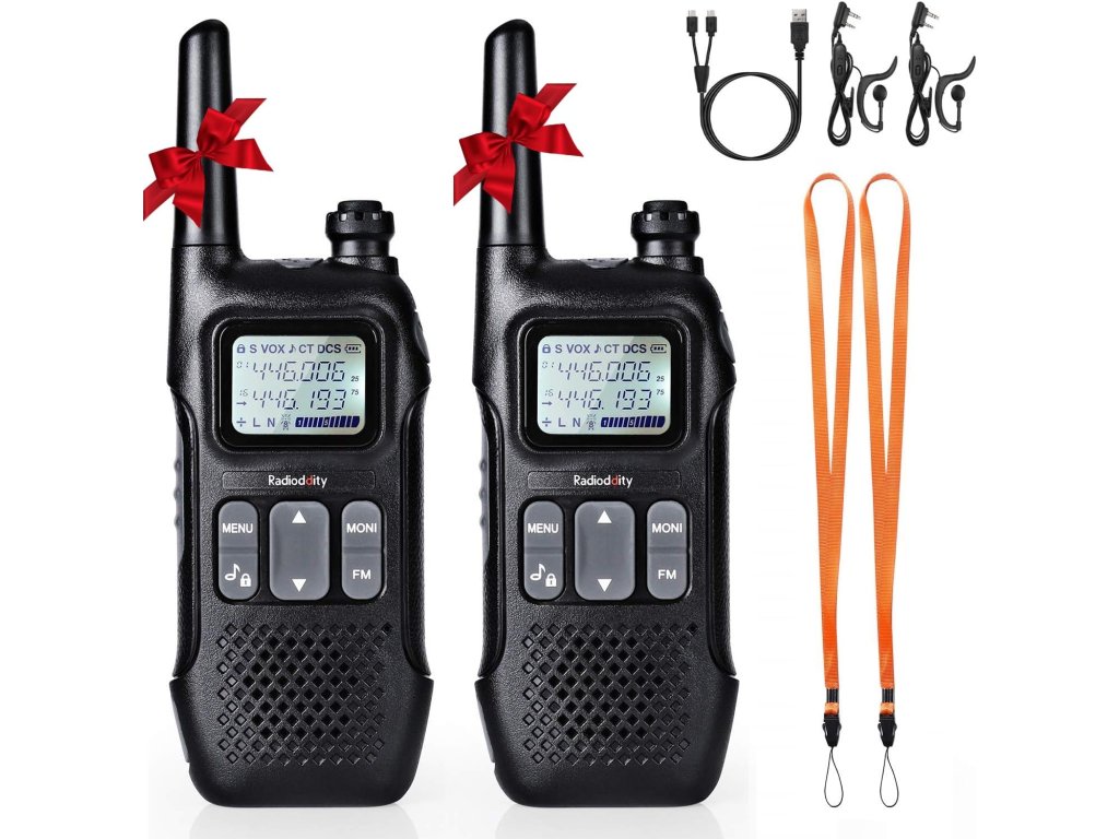 2ks Radioddity PR-T1 vysílačka s LCD displejem, 16 kanálů, dosah 4 km, nabíjecí, PMR446