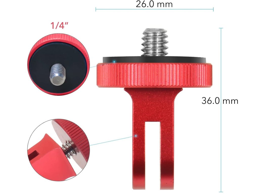 2ks adaptér pro stativ a akční kameru, 1/4", hliník, černý+červený