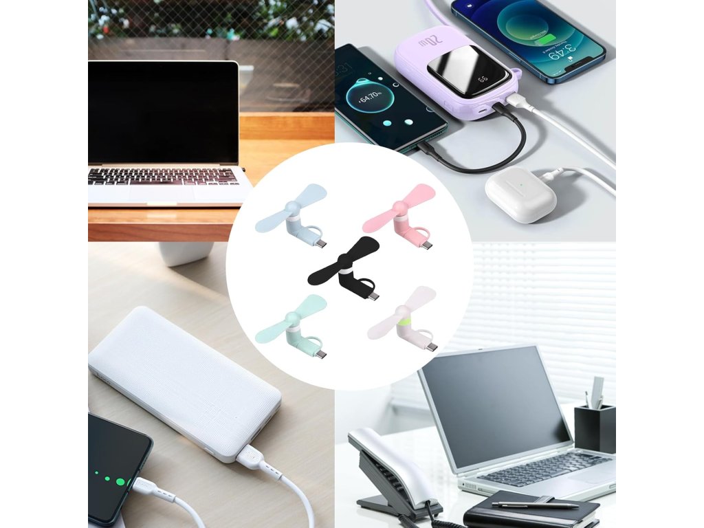 5ks mini ventilátor 2v1 pro telefony Android, přenosný chladič