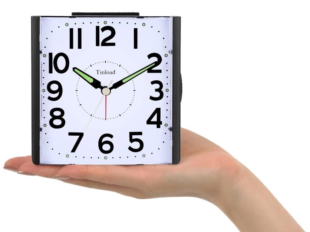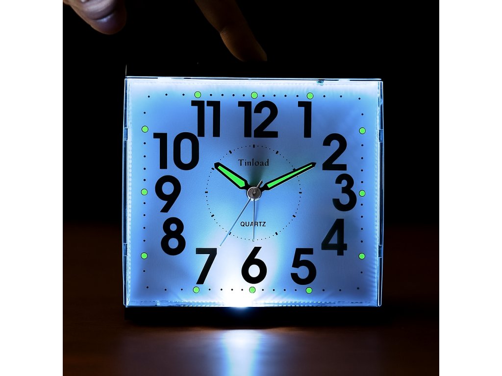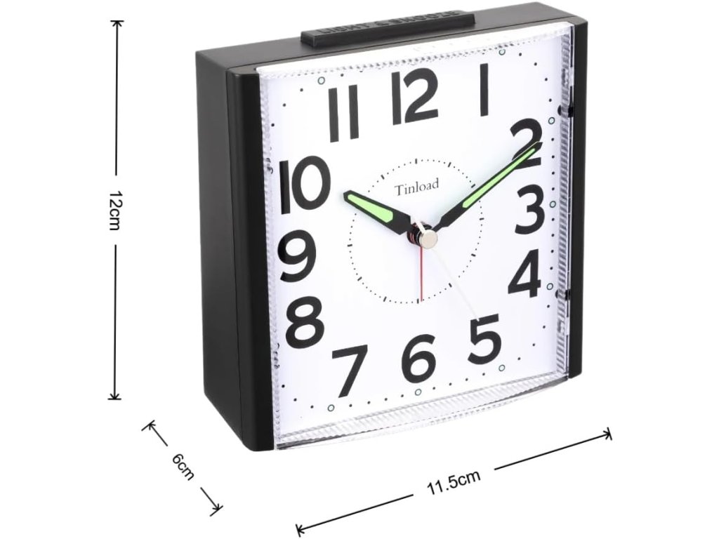 Analogový budík pro seniory s nočním světlem na baterie, 10 cm velký ciferník (32178)