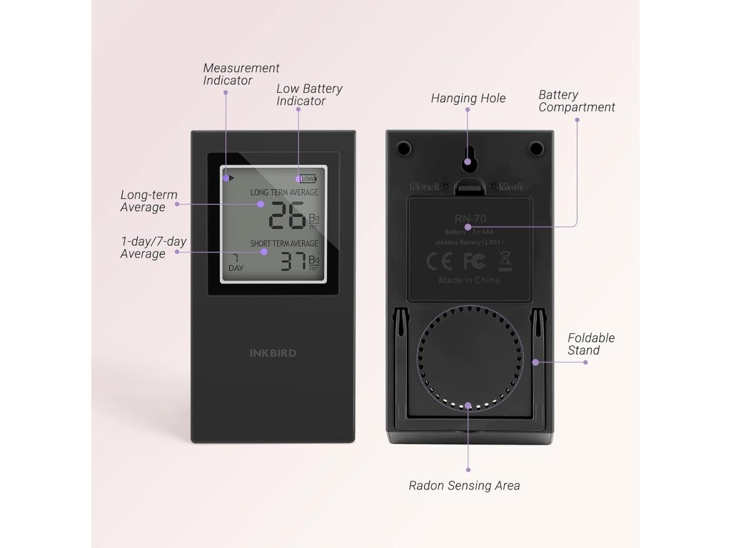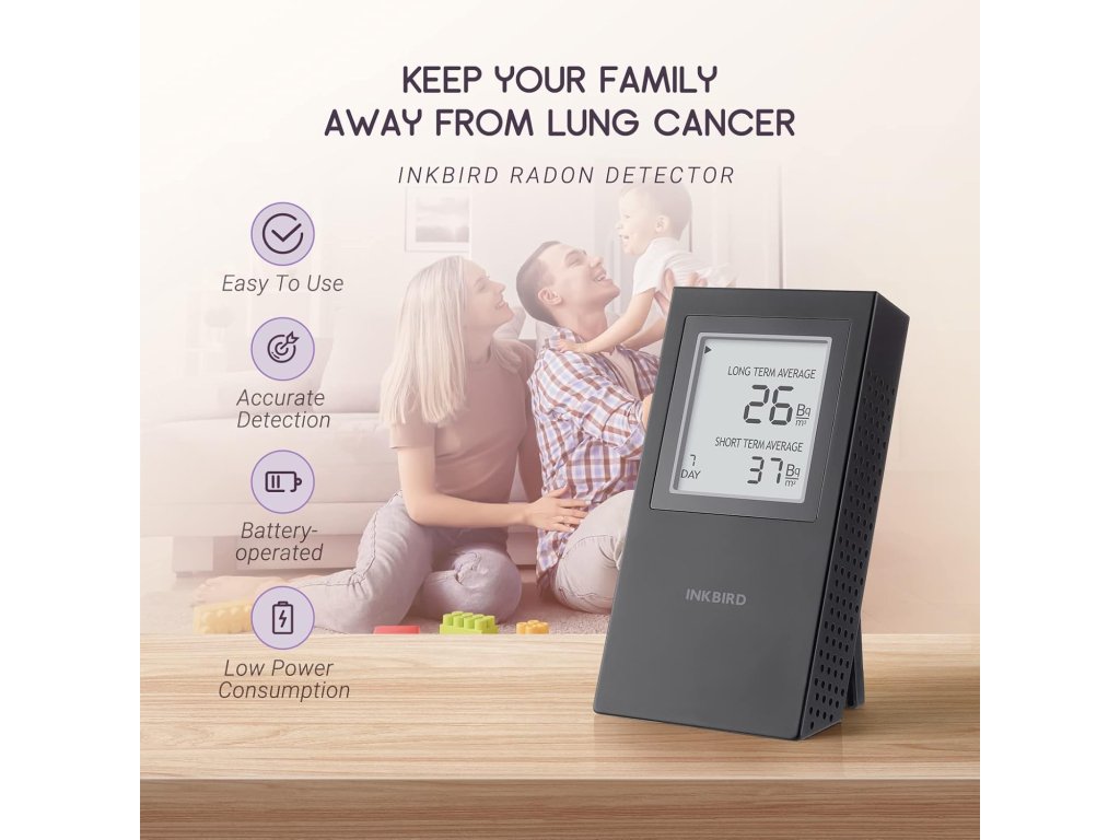 Inkbird Detektor radonu Ink-RD1 s krátkodobým a dlouhodobým sledováním radonu, verze EU-Bq/m³