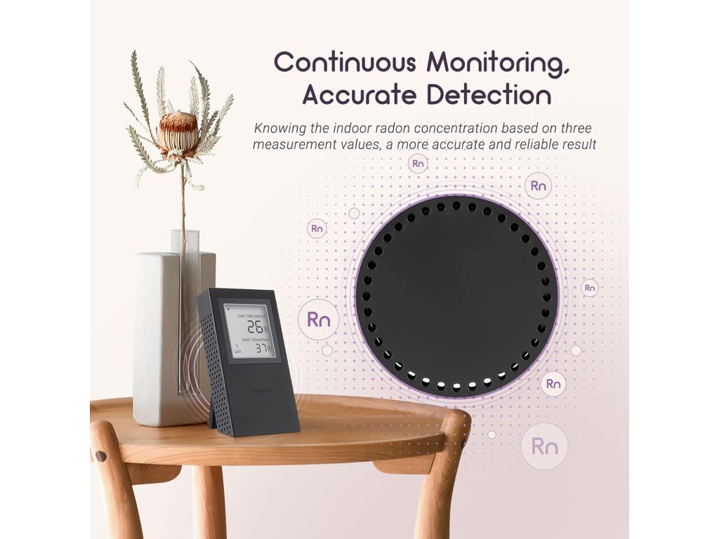Ideální pro jakékoli místo v blízkosti země, jako je garáž, sklep, obývací pokoj, pro průběžné sledování hladiny radonu v domě.