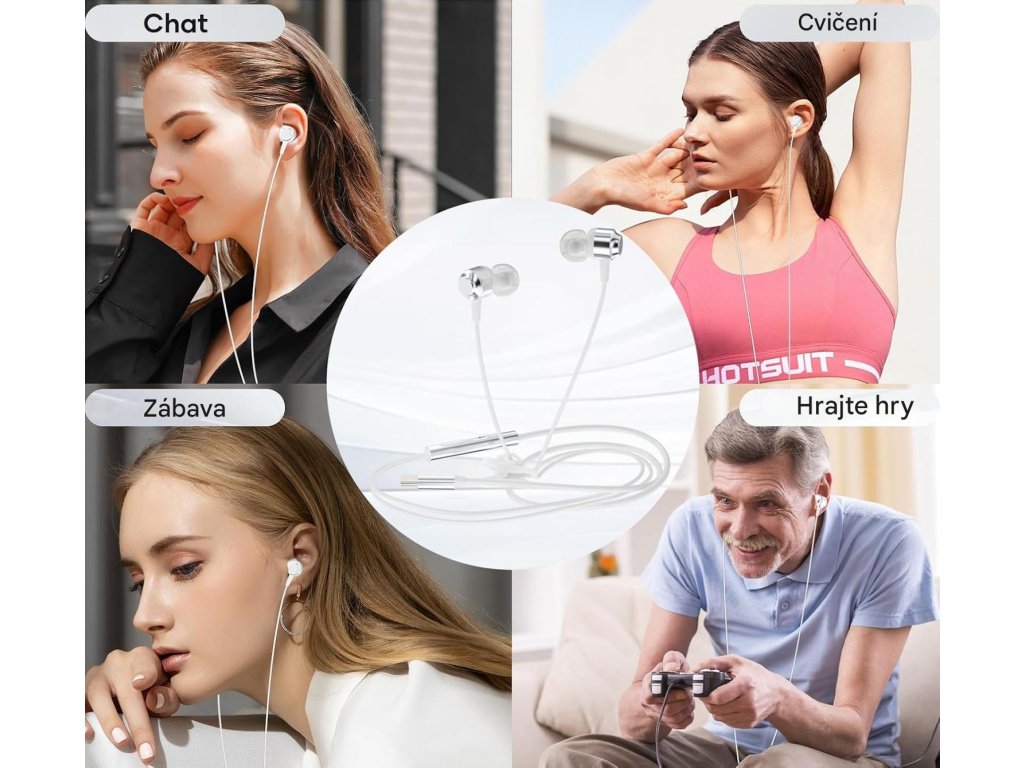 Univerzální USB-C sluchátka s mikrofonem, bílé