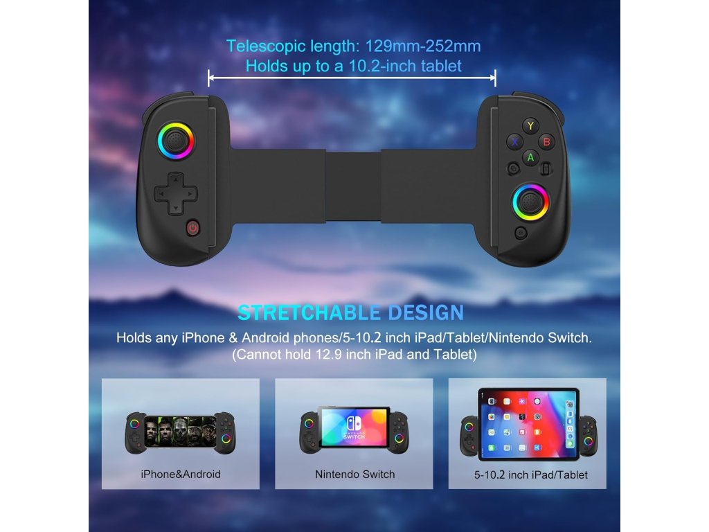 Herní ovladač pro iPad 7/6/5/4/3/2/1 (9,7 palců); iPad mini 6 / iPad mini 5 / iPad mini 4 (7,9 palců); iPad Air, iPad Air 2, iPad Air 3 (9,7 palců); iPad Pro (9,7 palců) (ne pro iPad Pro 12,9 palce)