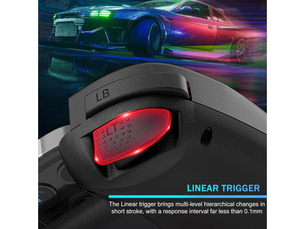 Tvar gamepadu padne do ruky, takže se můžete lépe ponořit do hry a i při delším používání sedět zcela pohodlně. 360° otočné analogové sticky Joystick a spouštěcí tlačítka...