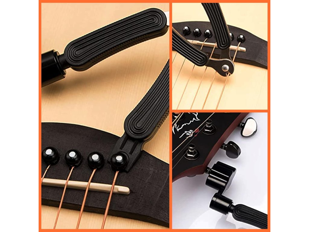 Univerzální kytarový nástroj, který vám usnadní výměnu strun během několika sekund.