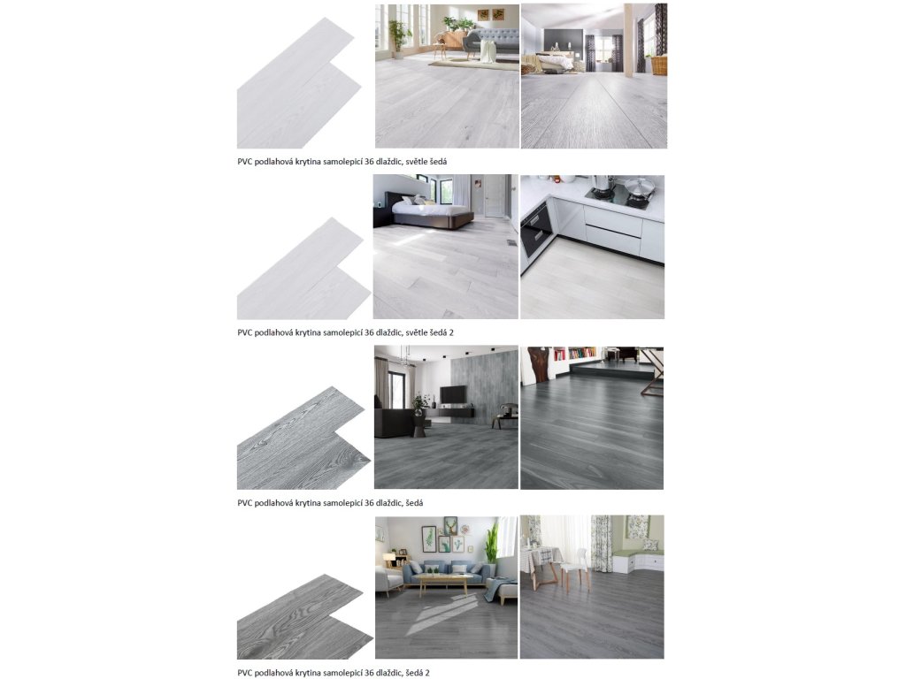 1 bal - PVC podlahová krytina samolepicí 36 dlaždic, světle šedá 2