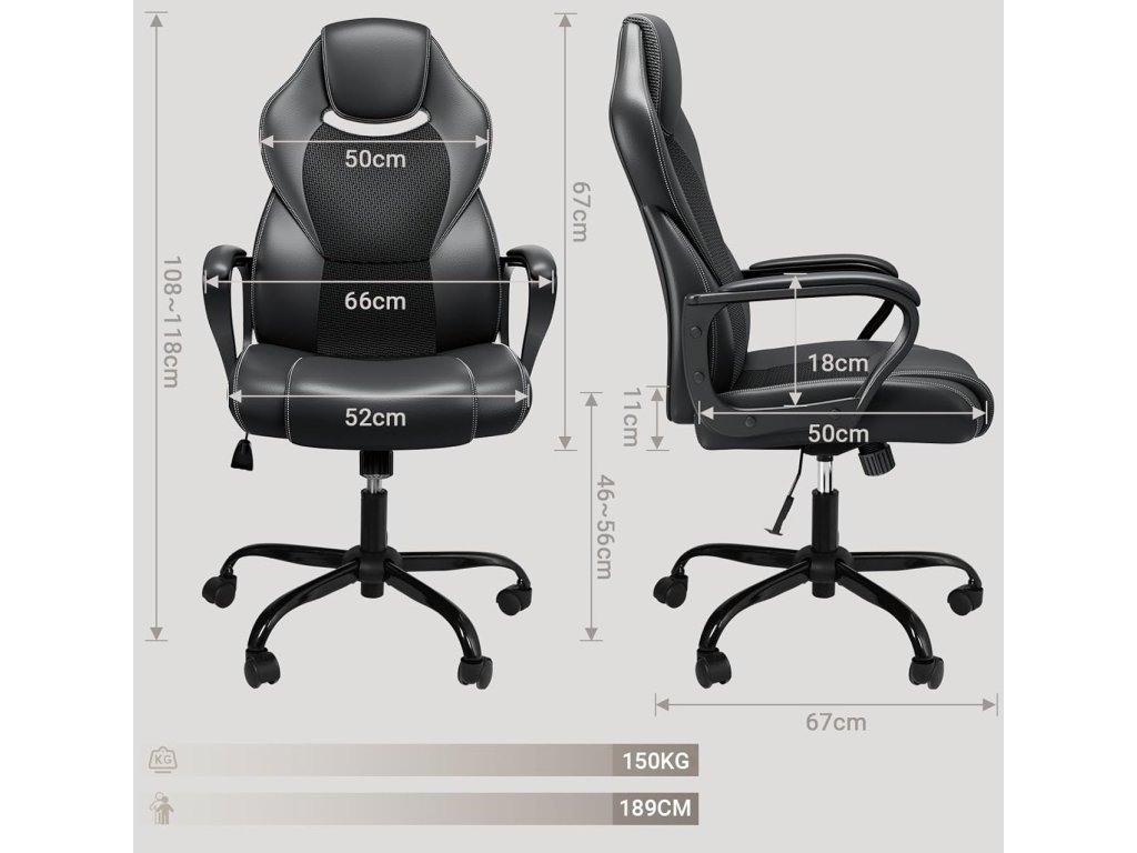 Materiál: Umělá kůže, paměťová pěna s vysokou hustotou, 3-Class plynový zdvih