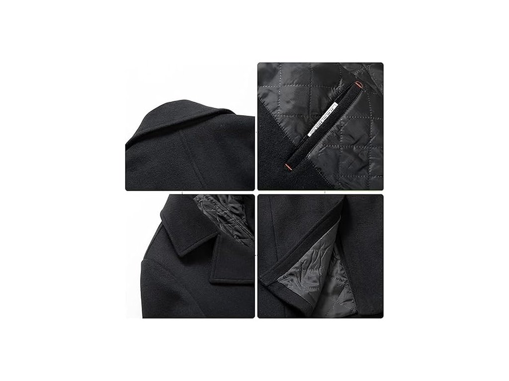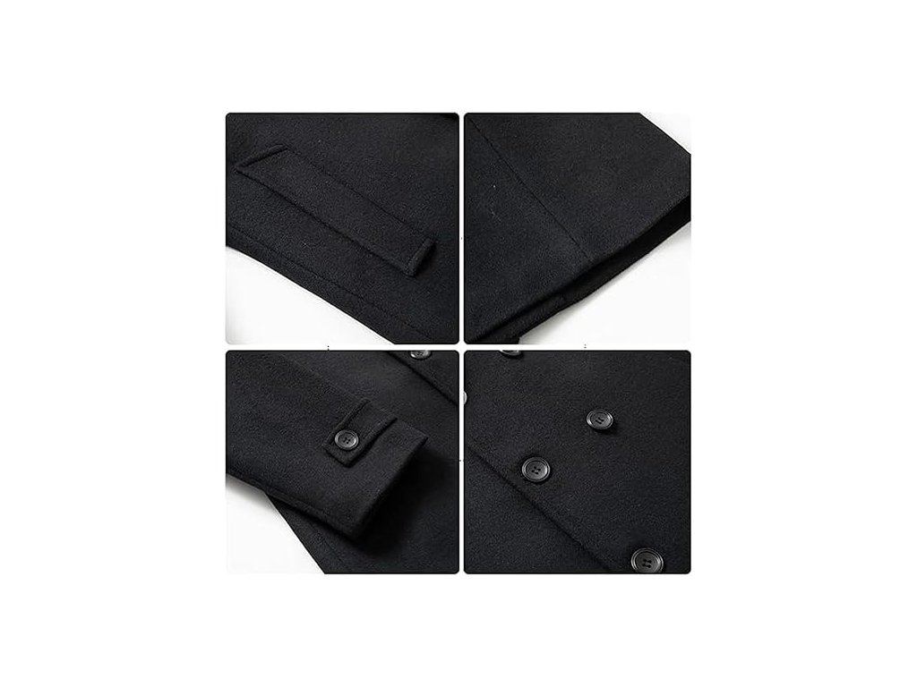 Pánský klasický dvouřadý Breasted vlněný kabát střední, 3XL, černý