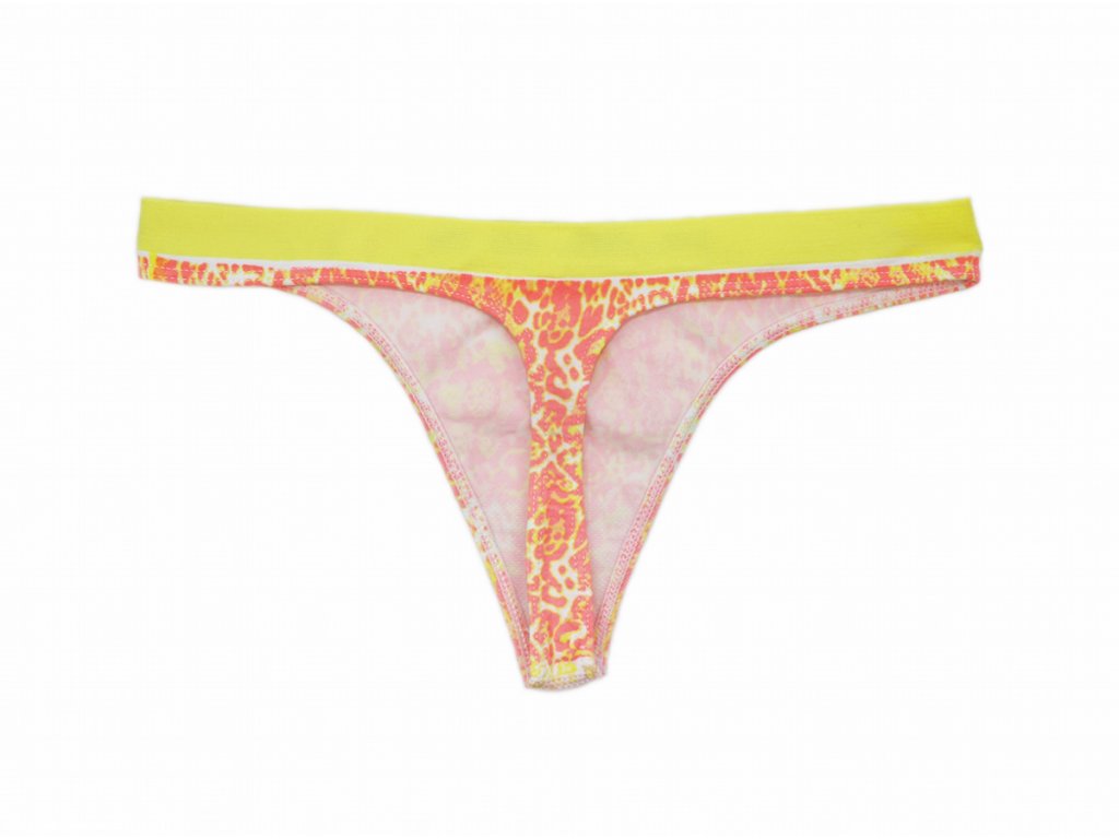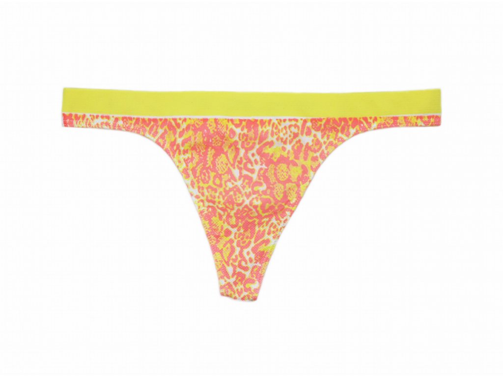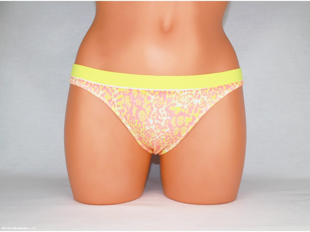 Velmi pěkné tanga krásné sytě žluto oranžové barvy na nichž jsou leopardí vzory.
