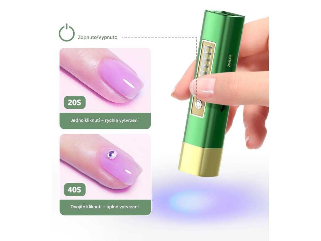 Stiskněte jednou tlačítko zapnutí/vypnutí na dobu 20 sekund, stiskněte dvakrát na dobu 40 sekund. Podle efektu manikúry můžete prodloužit nebo zkrátit dobu svícení.