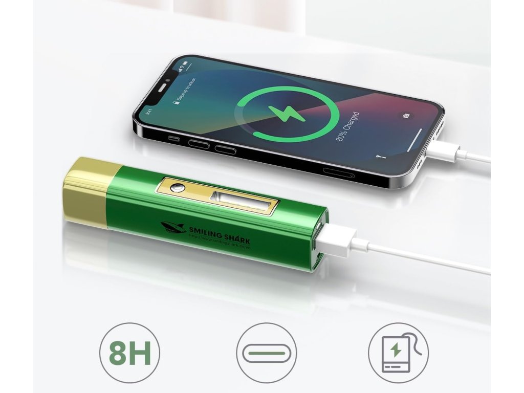 Je kompaktní a bez problémů se vejde do kapsy nebo kapsy kalhot. Nabitá může být provozována až 8 hodin.