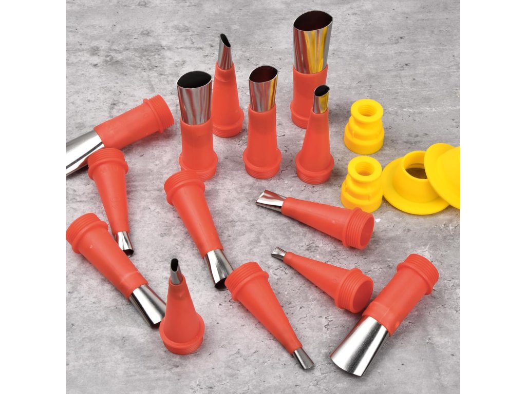 Sada 18ks opakovaně použitelné těsnicí trysky z ušlechtilé oceli, aplikátory
