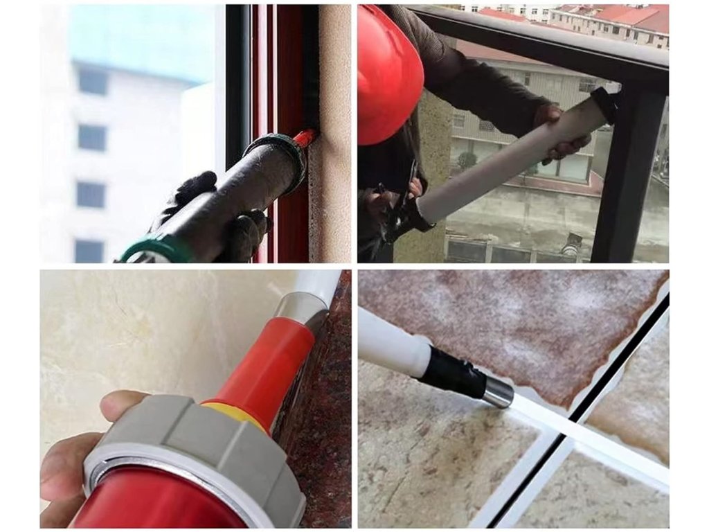 Univerzální sada trysek all-in-one se používá pro kuchyně, koupelny, vodní nádrže, dveře, okna, podlahy, umyvadla, spáry, těsnění rámů, atd.