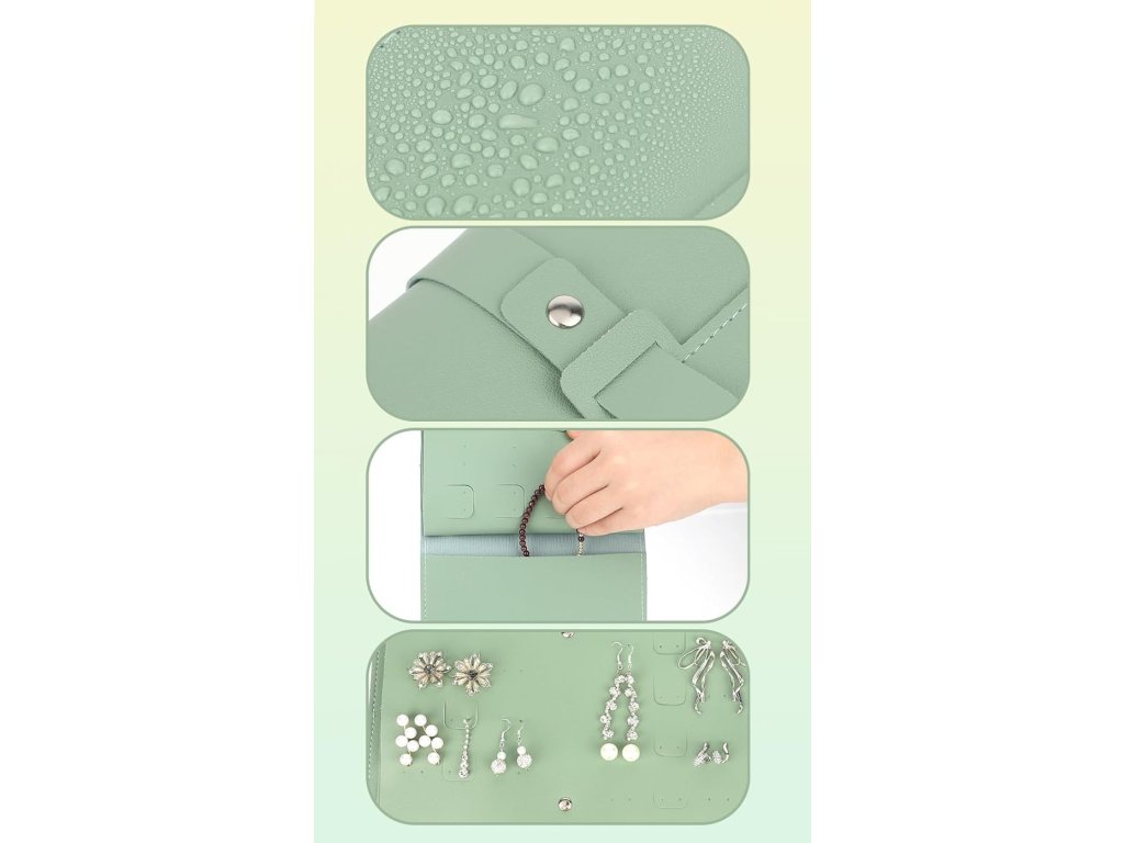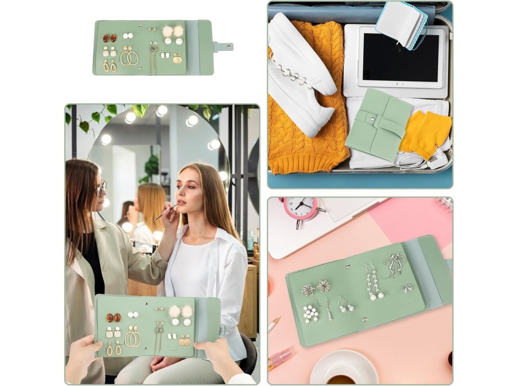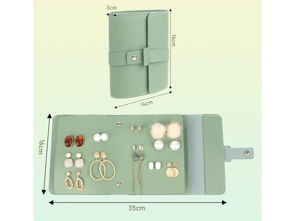 Cestovní pouzdro na šperky z umělé kůže pro 42 párů naušnic, zelené