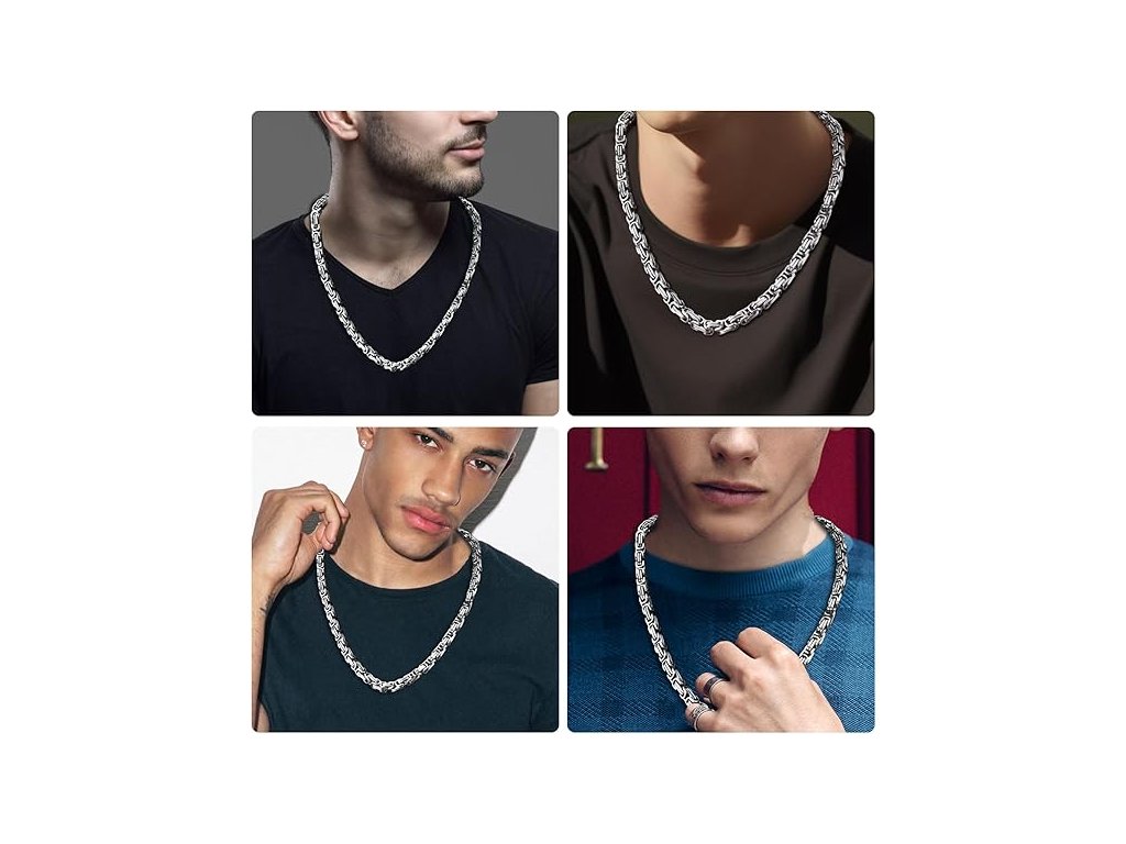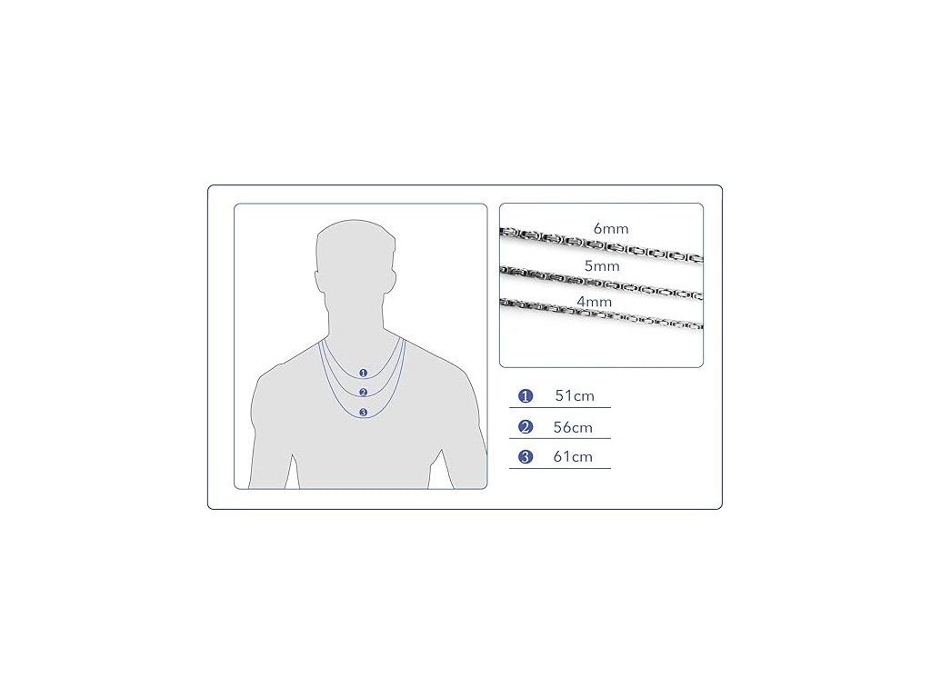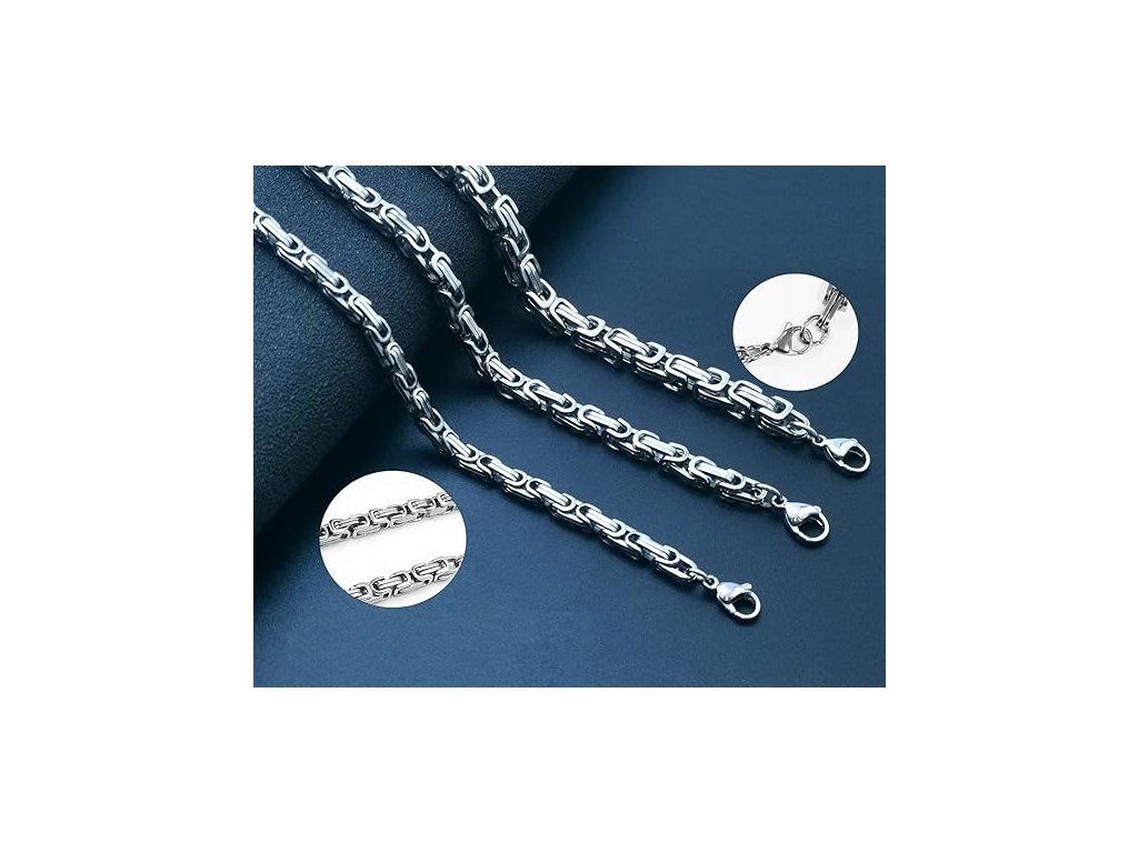 Vikingský byzantský řetízek je vyroben z kvalitní ušlechtilé oceli, s odolnějším uzávěrem. Solidní a s dlouhou životností, bez olova a niklu, zdravý a bezpečný, antialergický. Stříbrný řetízek nabízí pohodlný tvar, je lehký a snadno se nosí.