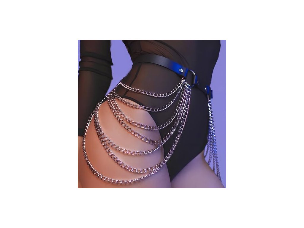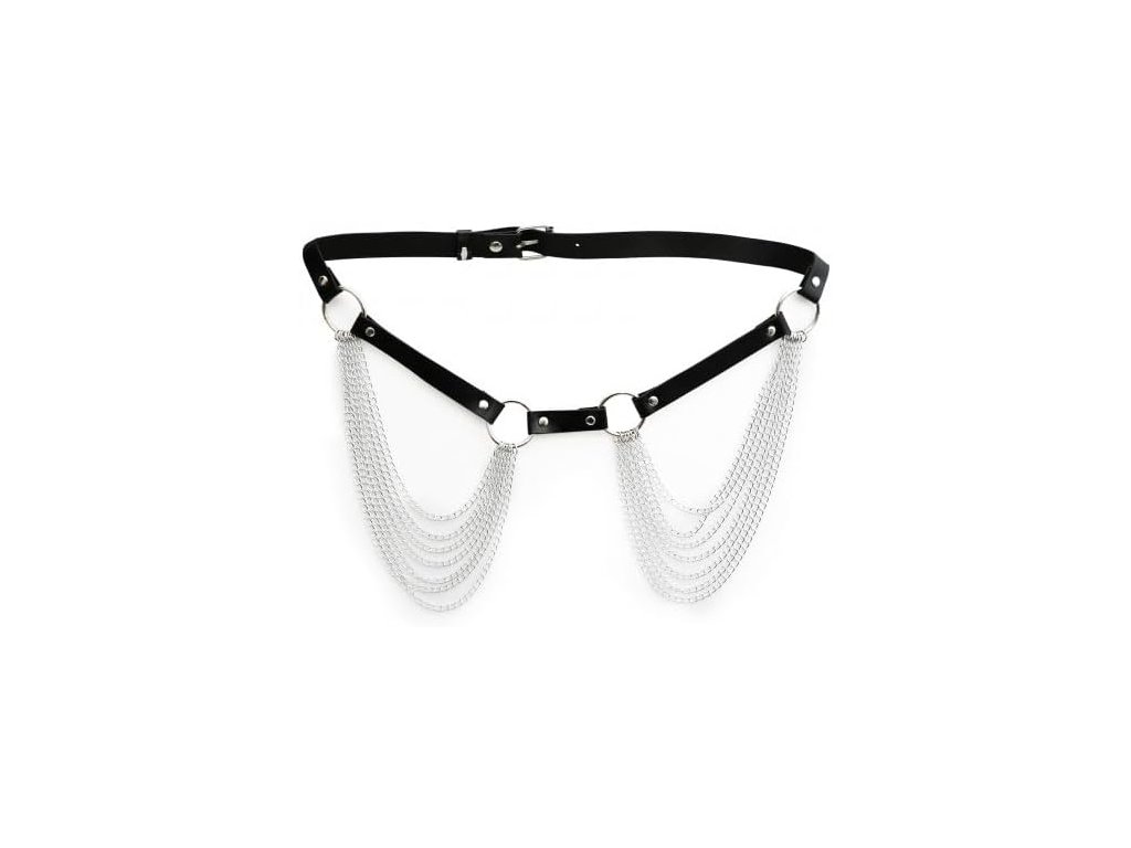 Kožený řetízek na tělo a lesklý třpytivý štrasový řetízek.