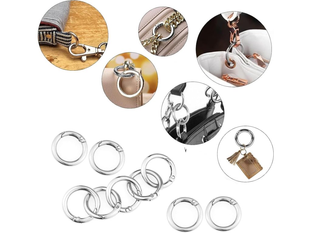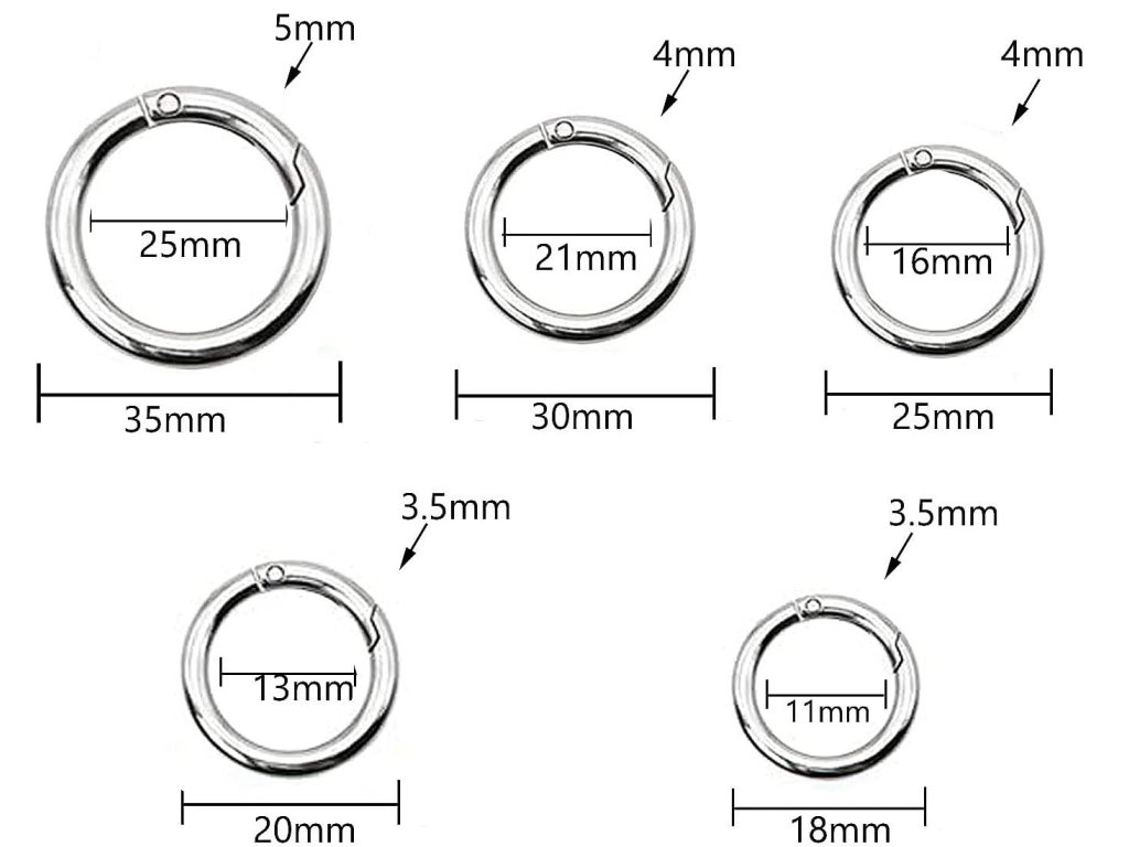 Karabinový kroužek se skládá ze zinkové slitiny, povrch je leštěný, pozlacený, poniklovaný, hladké hrany, jemné zpracování, dlouhá životnost.