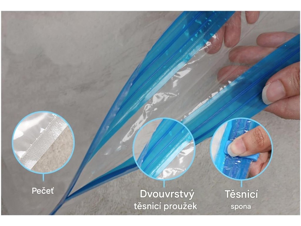 Vakuové úložné sáčky jsou vybaveny dvojitými těsnicími proužky, okraje jsou pevné a bezpečné a nabízejí vynikající těsnicí výkon.