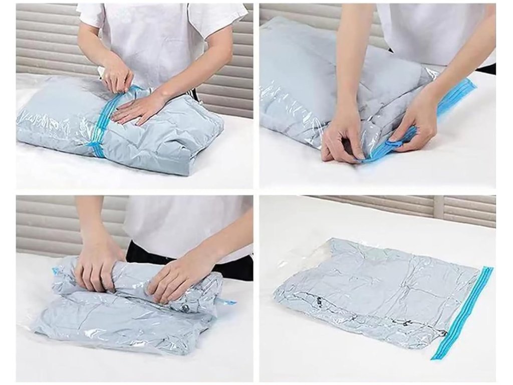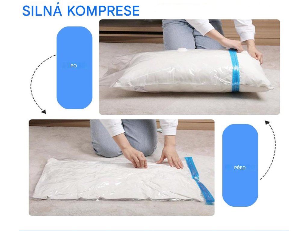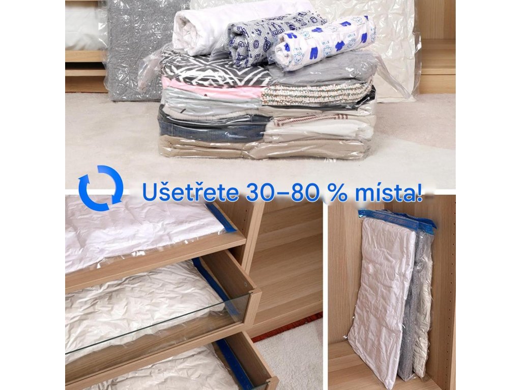 Vakuově kompresní konstrukce vám umožňuje ušetřit 30–80 % místa. Můžete ušetřit více místa pro uložení oblečení, péřových bund, dek, polštářů, ložního prádla, ručníků, přikrývek, atd.