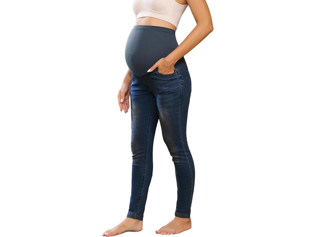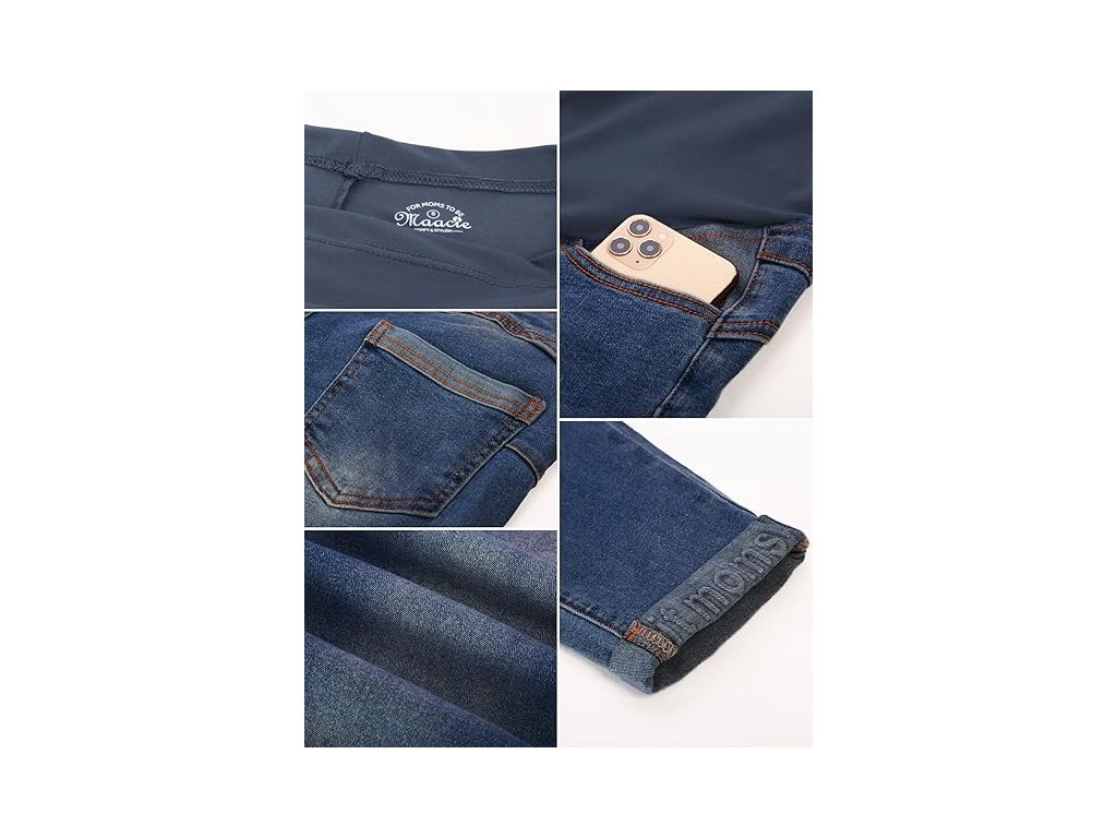 Maacie Elastické těhotenské kalhoty, džíny pro těhotné s vroubkovanými lemy, L
